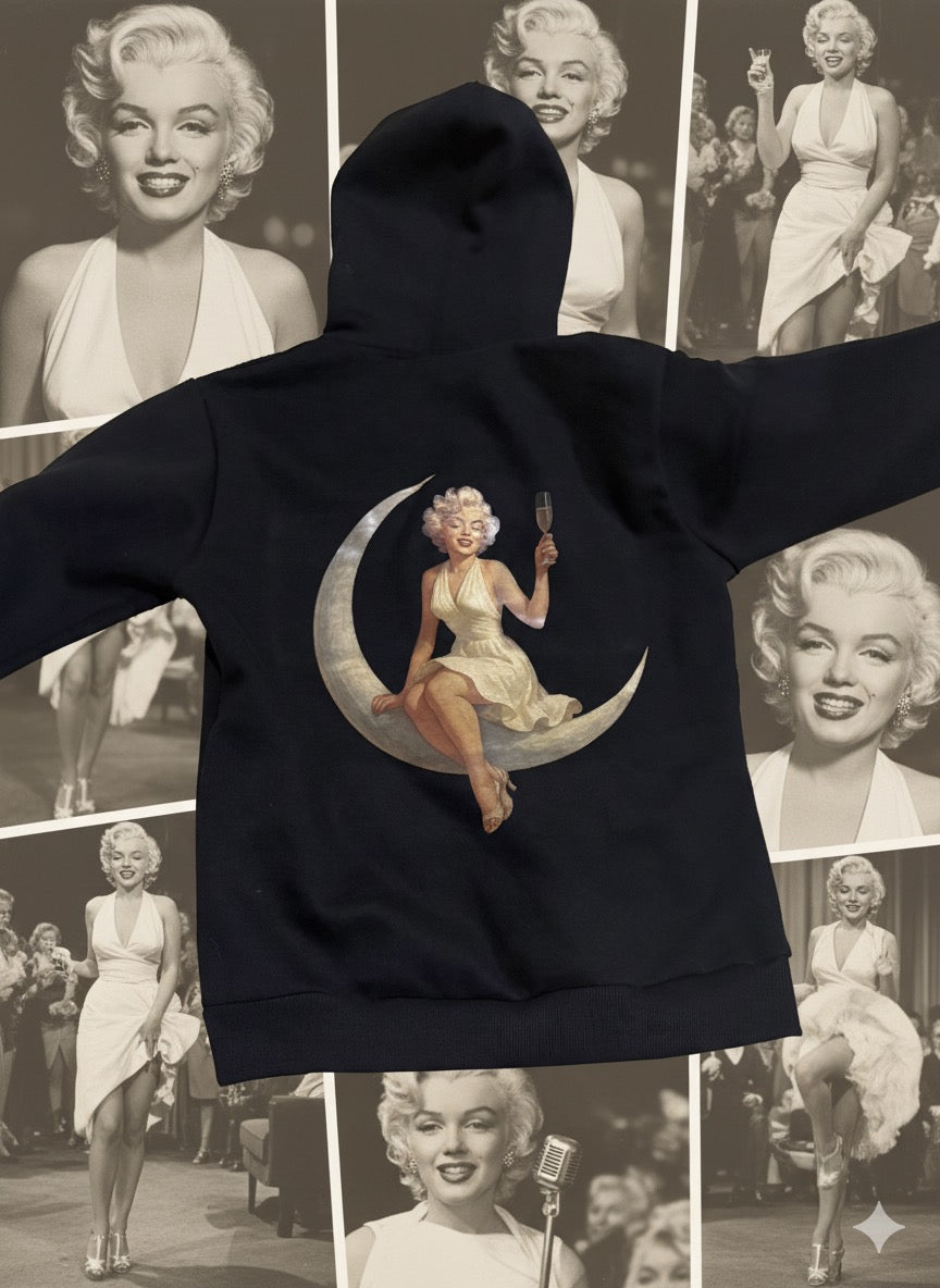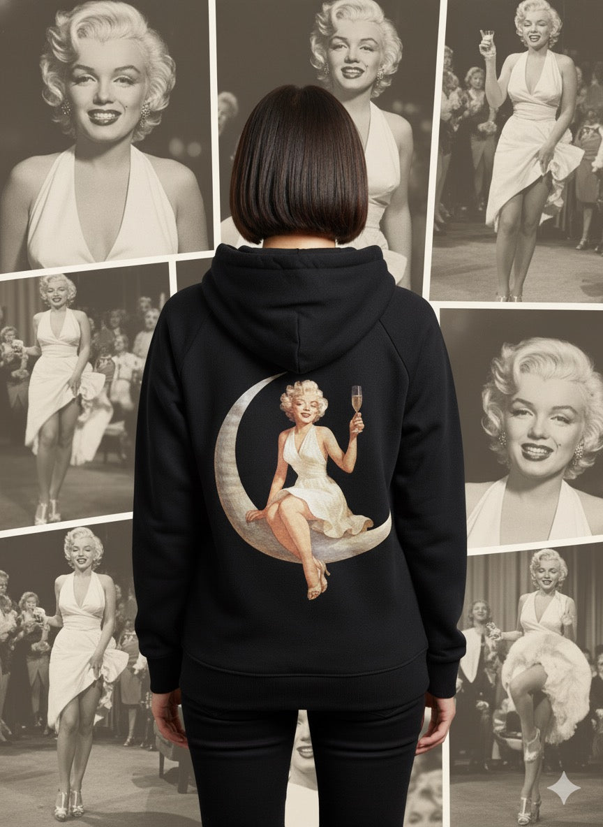 Celebrate timeless glamour with a modern streetwear edge in this statement hoodie inspired by the legendary Marilyn Monroe. Designed to turn heads, this hoodie features a bold back graphic that blends vintage Hollywood elegance with contemporary urban fashion. The clean front keeps the look balanced and versatile, while the striking artwork on the back delivers a powerful visual statement. Perfect for daily wear, layering, or standout street styling, this piece is built for those who appreciate iconic design with premium appeal.