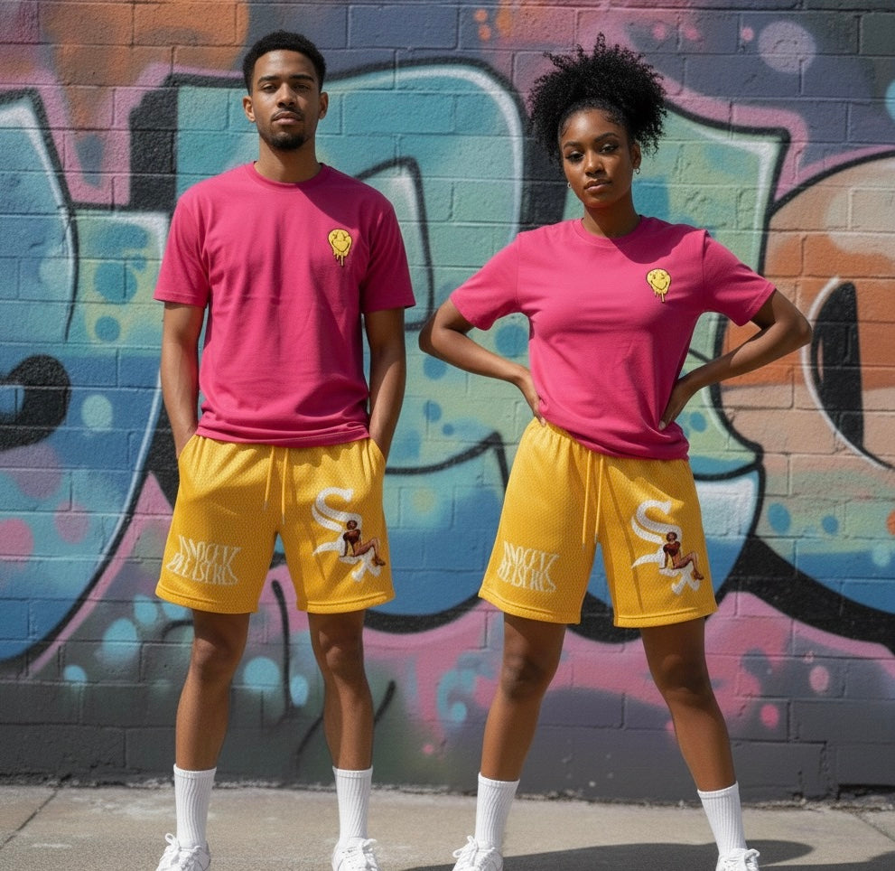 Bright yellow energy meets iconic influence with these statement graphic shorts inspired by the timeless legacy of Marilyn Monroe. Designed with an athletic cut, adjustable waistband, and breathable fit, these shorts deliver bold visual impact with all-day comfort. The striking front artwork adds a vintage pop-culture edge, making them perfect for summer styling, casual outings, or elevated lounge looks. A fresh fusion of modern street fashion and classic icon energy.